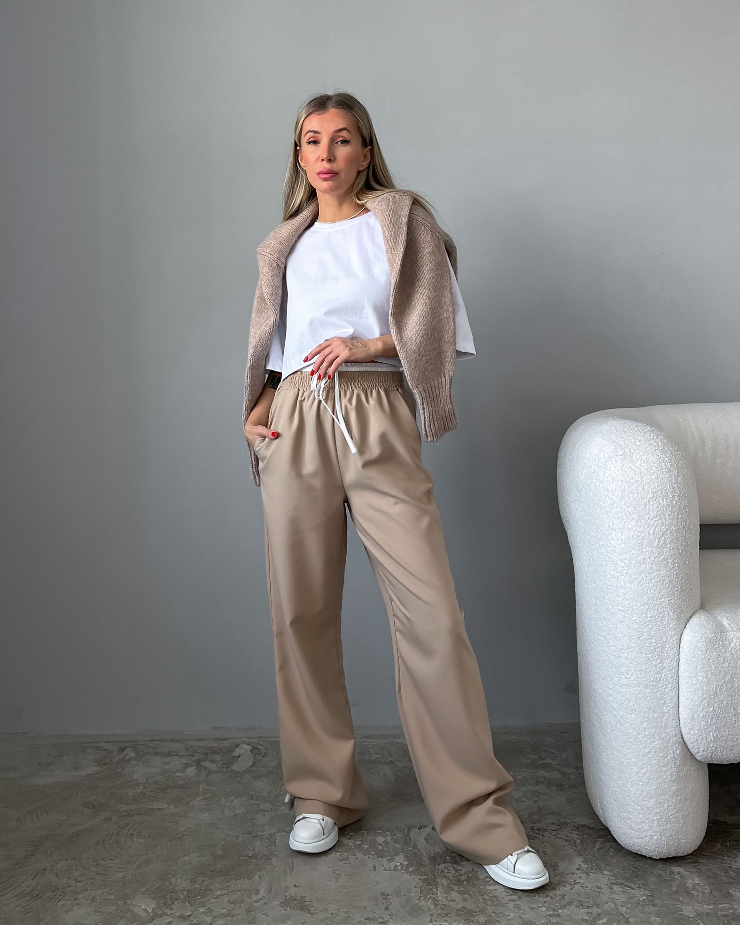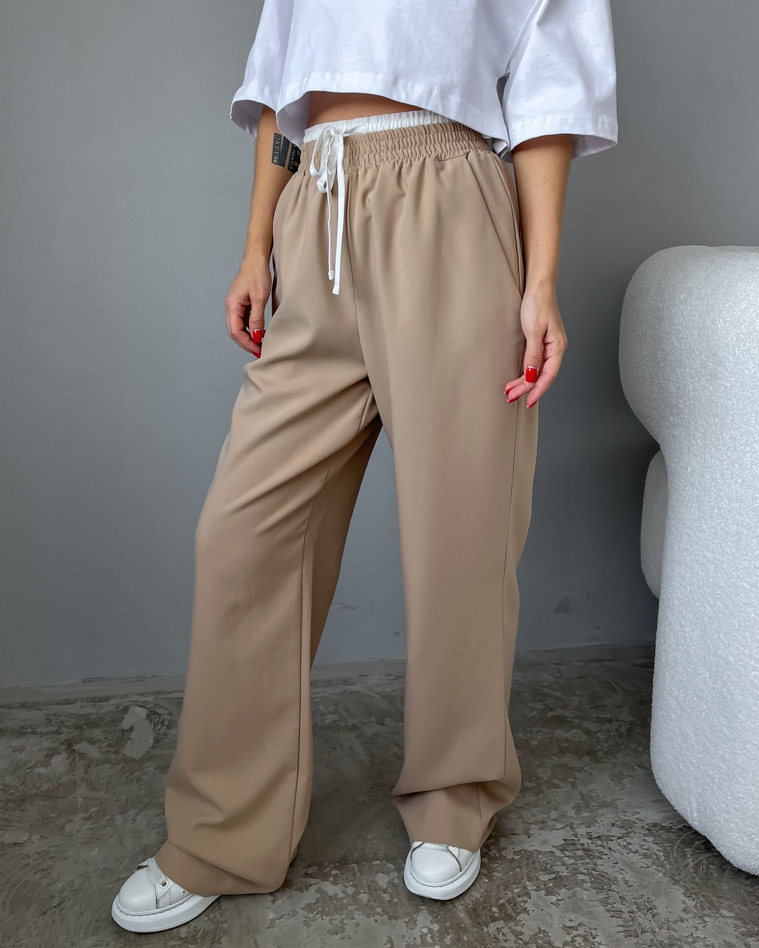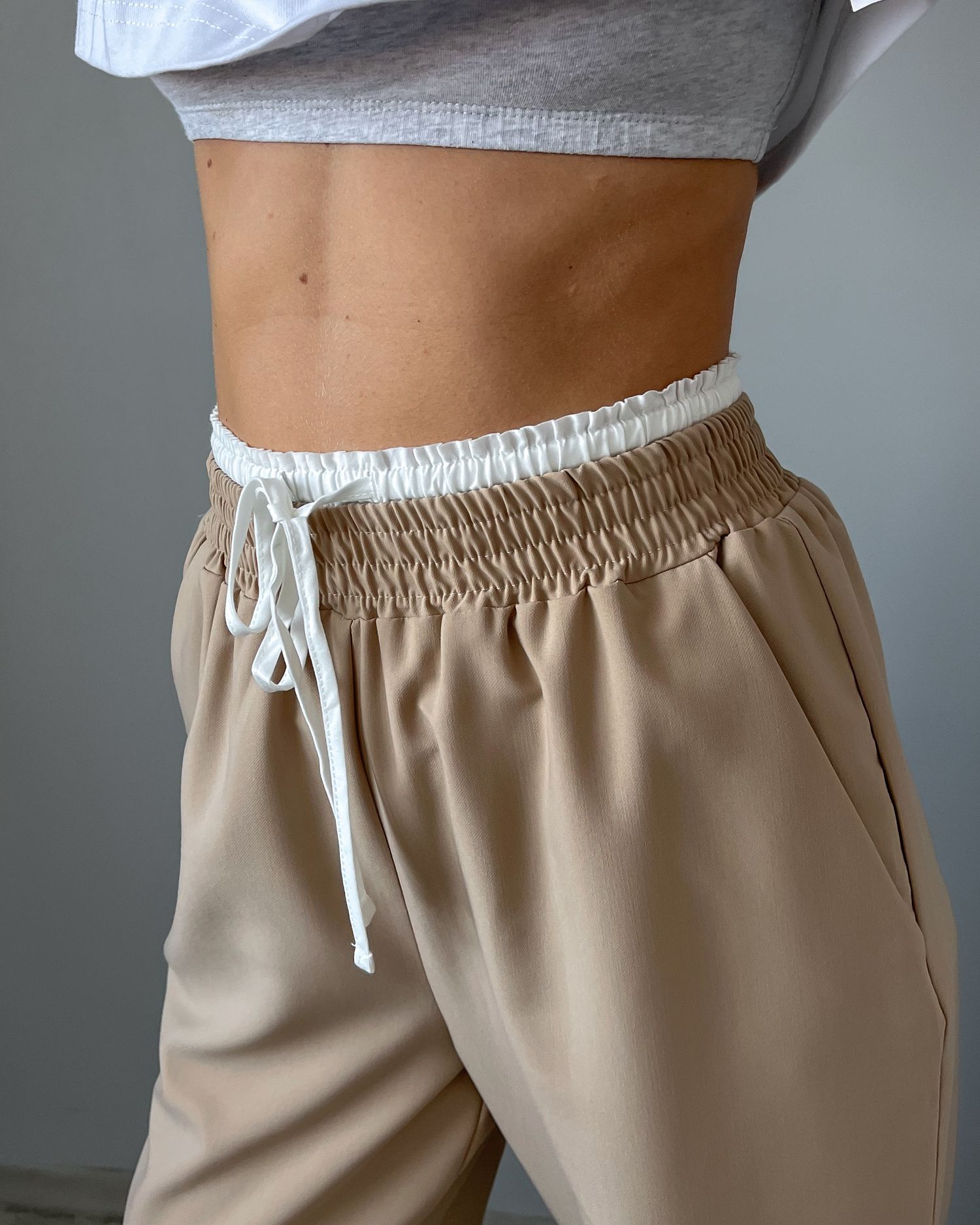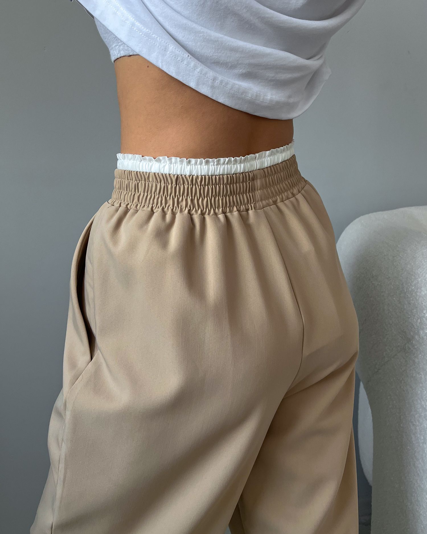 Брюки с двойным поясом на кулиске 28998