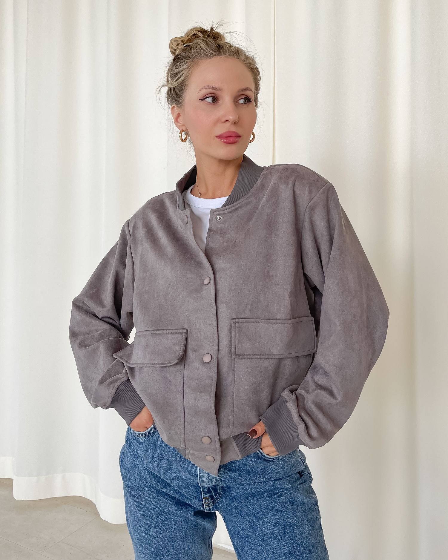 Бомбер с накладными карманами 27833