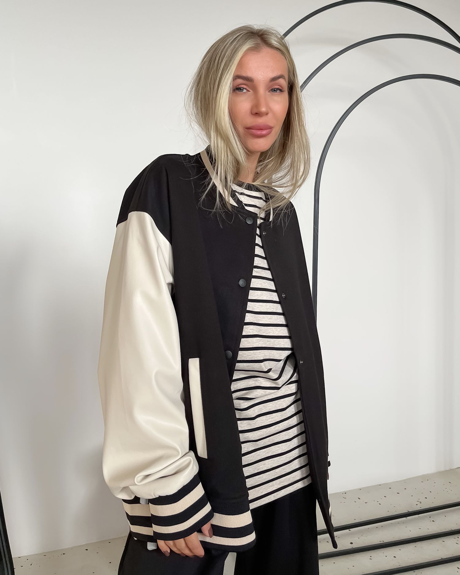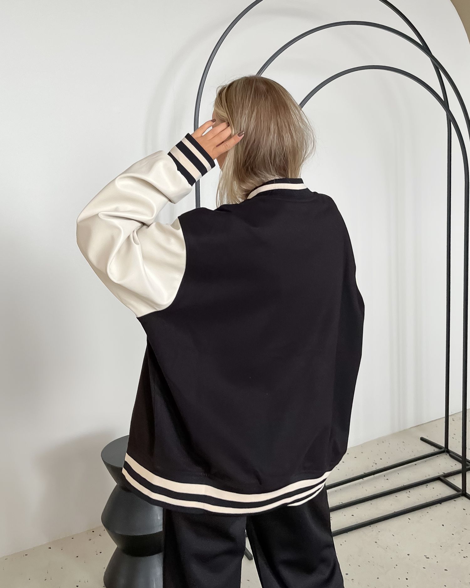 Бомбер с рукавами из эко-кожи 27928